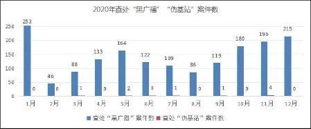2020年,各地无线电管理机构联合公安、广电等部门,深入开展打击治理“黑广播”“伪基站”违法犯罪活动。按照国务院打击治理电信网络新型违法犯罪工作部级联席会议办公室(以下简称联席办)《关于开展打击治理“黑广播”“伪基站”违法犯罪集中行动的通知》(公刑侦〔2020〕1778号)的部署和要求,各地无线电管理机构进一步提高技术手段能力和水平,加强源头治理,全年联合查处“黑广播”违法犯罪案件1711起,同比下降11%,查处“伪基站”违法犯罪案件61起,同比下降80%,缴获非法无线电发射设备1373余台(套),有效遏制了各类非法使用无线电频率和非法设置无线电台(站)行为,有力维护了空中电波秩序和社会稳定。