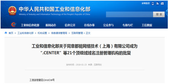 近日,工信部官网的公示文件显示,国际新通用顶级域名“.CENTER”“.VIDEO”“.SOCIAL”“.TEAM”“.SHOW”“.COOL”“.ZONE” “.WORLD”“.TODAY”“.CITY”“.CHAT”“.COMPANY”“.LIVE”“.FUND”“.GOLD”“.PLUS”“.GURU”“.RUN” “.PUB”“.EMAIL”“.LIFE”已正式通过工信部域名注册管理机构审批,成为又一批在中国境内获得资质审批的顶级域名。通过工信部资质审批后,使用这些域名的用户将可以提交备案申请,在境内建站使用。