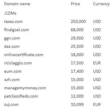 1月9日消息,新年刚过,国外米市就热闹非凡。据新一期sedo域名交易榜显示,本期共有143个域名超2000美元成交,数量大大超过此前上榜域名。其中,价格最高的是英文域名taxes.com,成交价为250.000美元,约合人民币170万元。