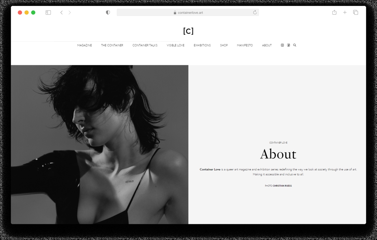 《Container Love》是在德国柏林发行的全球性跨界酷儿杂志和展览系列。 《Container Love》在十年前发起,通过沉浸式的展览活动以及摄影制作,为观众带来了多元的体验。 Containerlove.art上展示了多元化的当代艺术家群体,并为他们提供进行创新合作和表达的平台。