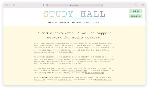 他们还可以找到指向社交媒体帐户、电子邮件和社群存在的所有其他平台的链接。StudyHall.xyz拥有超过4.500名成员的电子邮件列表服务,每周接收时事通讯并访问信息丰富的Slack聊天和编辑器数据库。