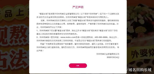 虽然蜜雪冰城的主要业务发展是在线下,但对于域名还是挺重视的。