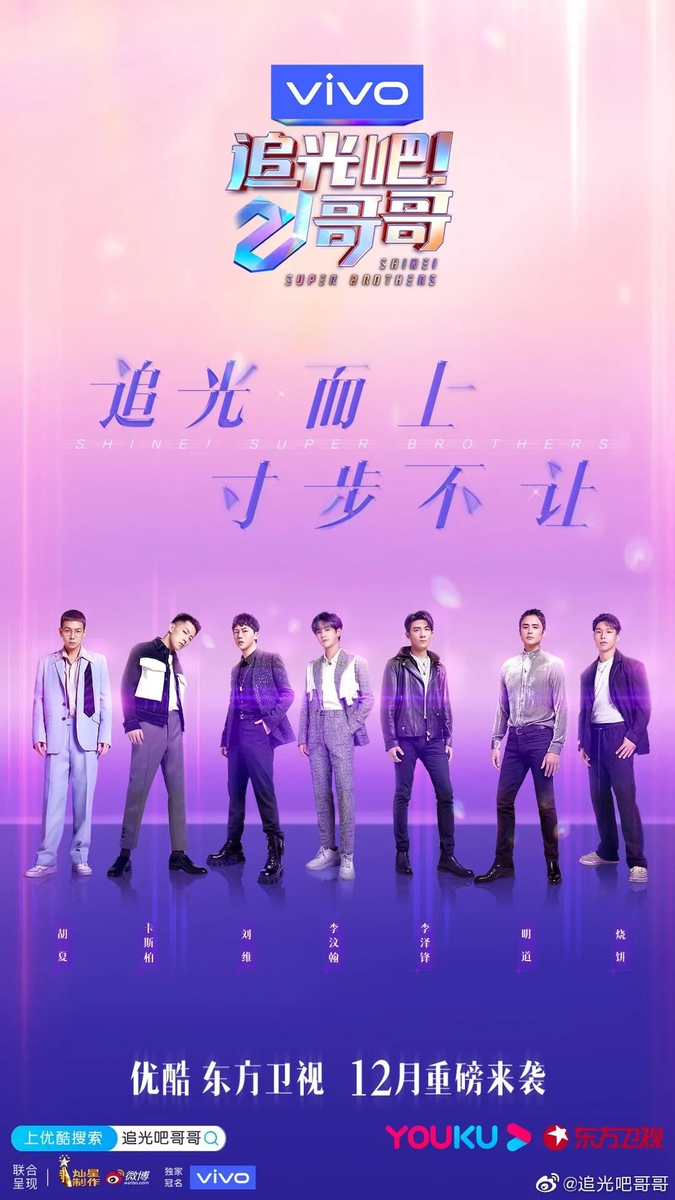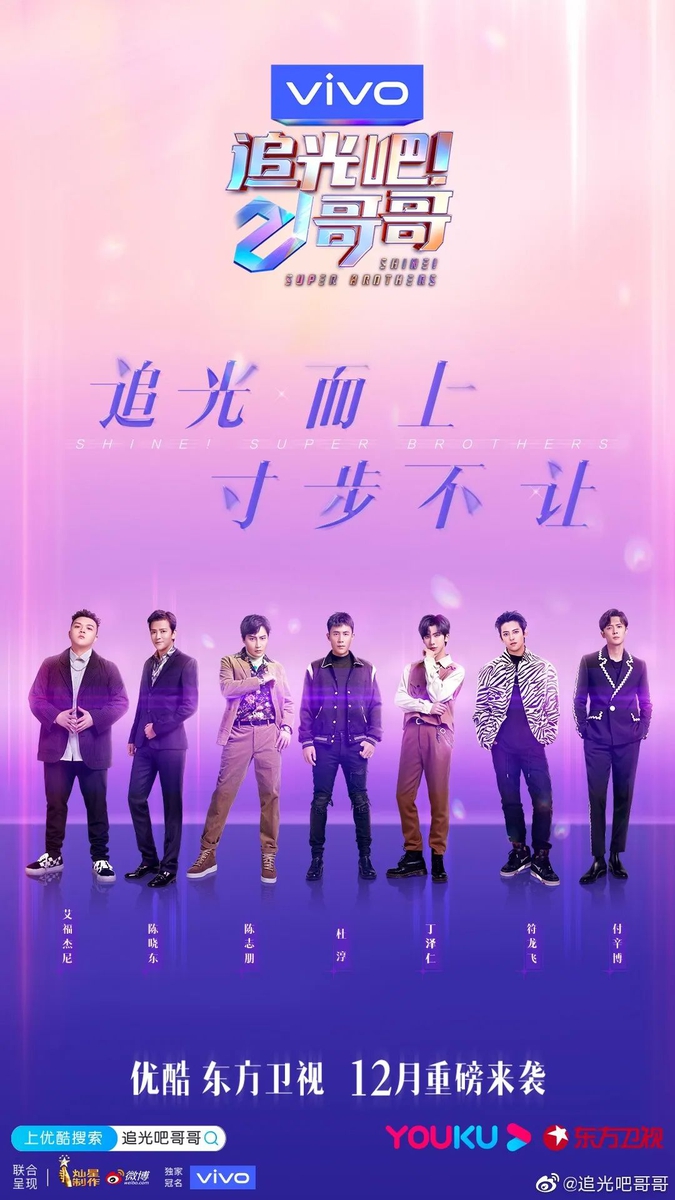 《追光吧!哥哥》仿效“浪姐”的成团理念,找来了21位年龄从90后横跨至70后的混龄哥哥们,通过唱跳竞演的方式,最后竞选出7位哥哥“成团出道”。